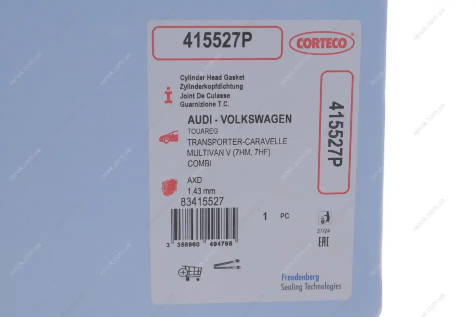 Прокладка головки блоку циліндрів CORTECO 415527P (070103383L, 070103383P)