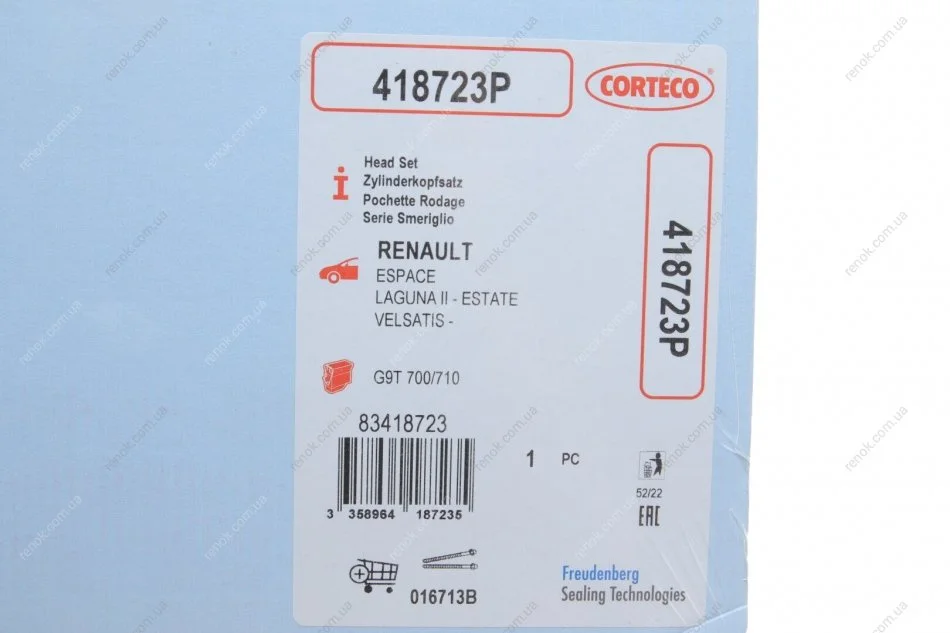 Комплект прокладок (верхній) Renault Master/Trafic 2.5dCi (без прокладки ГБЦ) CORTECO 418723P (7701477813, 7701475278, 7701473577)