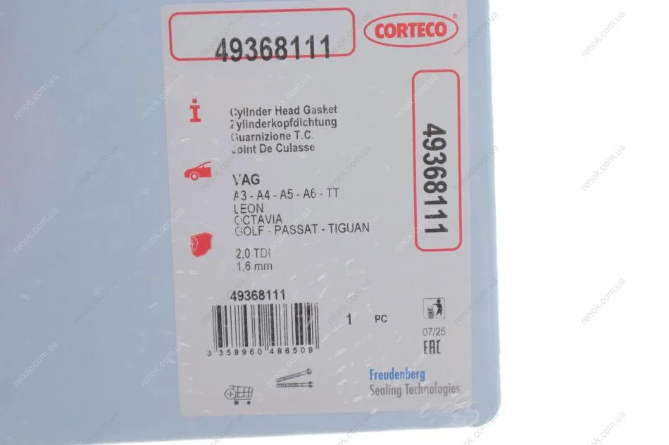 Прокладка головки блоку циліндрів CORTECO 49368111 (04L103383BK, 04L103383AD)