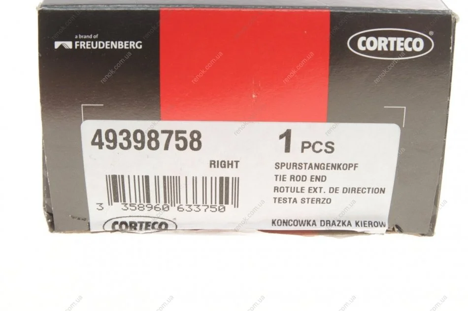 Накінечник тяги керма (R) Audi A3/Skoda Octavia/VW Golf IV 95-06 (правва різьба) (парний №49398697) CORTECO 49398758 (1J0422812D, 1J0422812E)