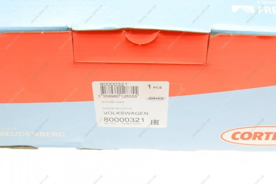 Подушка двигуна (R) Skoda Fabia/ Rapid/ Roomster/VW Polo 1.2 06- CORTECO 80000321