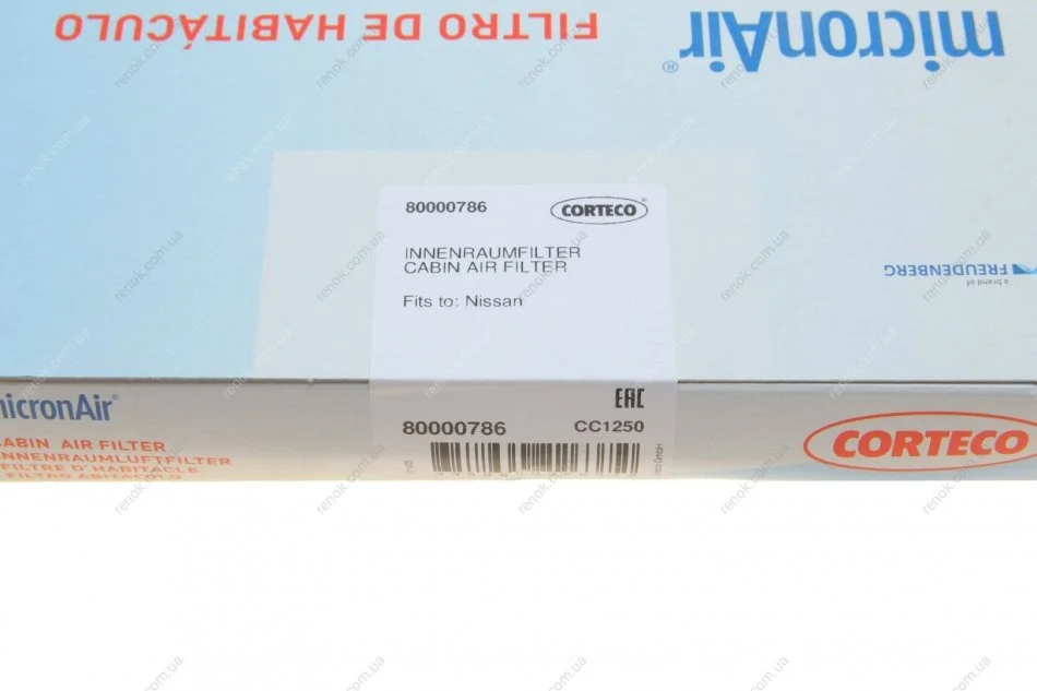 Фільтр салону Nissan Navara/Pathfinder 2.5dCi/3.0dCi/4.0 05- (вугільний) CORTECO 80000786 (27274EA000, 27277VR00A)