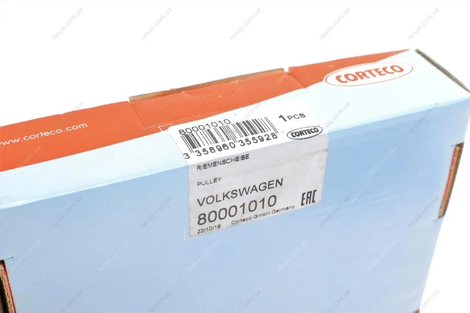 Ремінний шків, колінчастий вал 8000 1010 CORTECO 80001010 (7700115766, 8200386446, 7700113776)