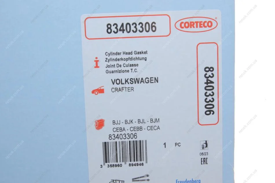 Прокладка головки блоку циліндрів CORTECO 83403306 (076103383C)