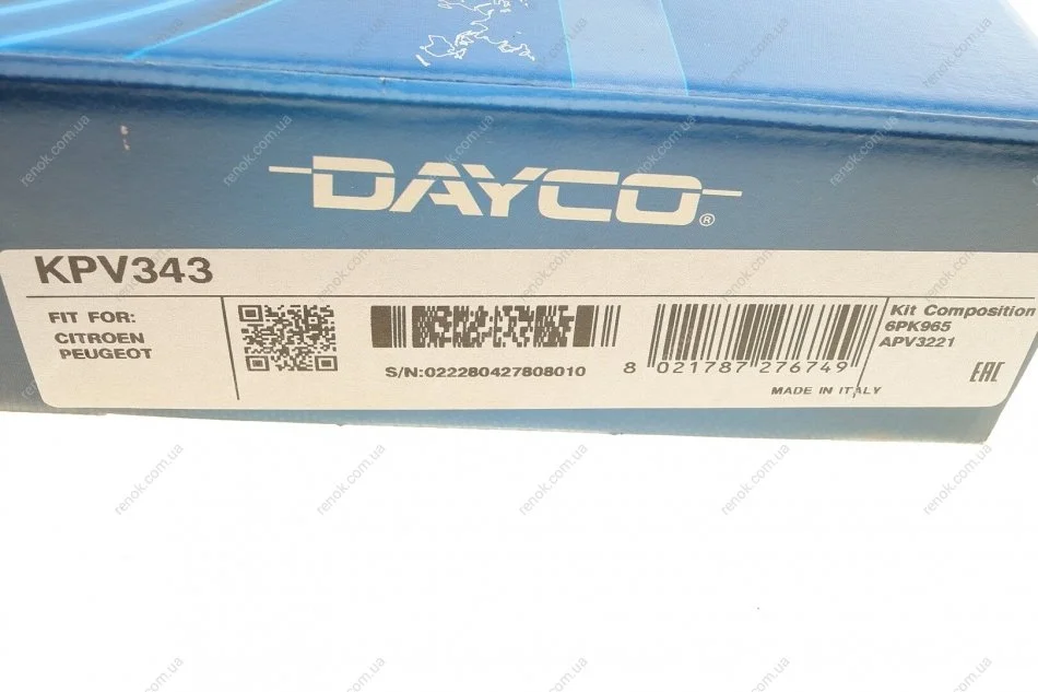 Аналоги "KPV343 DAYCO":