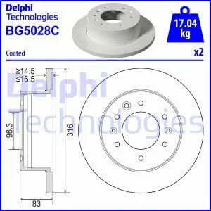 Комплект гальмівних дисків (2 шт) задн Лів/Прав HYUNDAI H350 2.5D 04.15- Delphi BG5028C (5276159000)