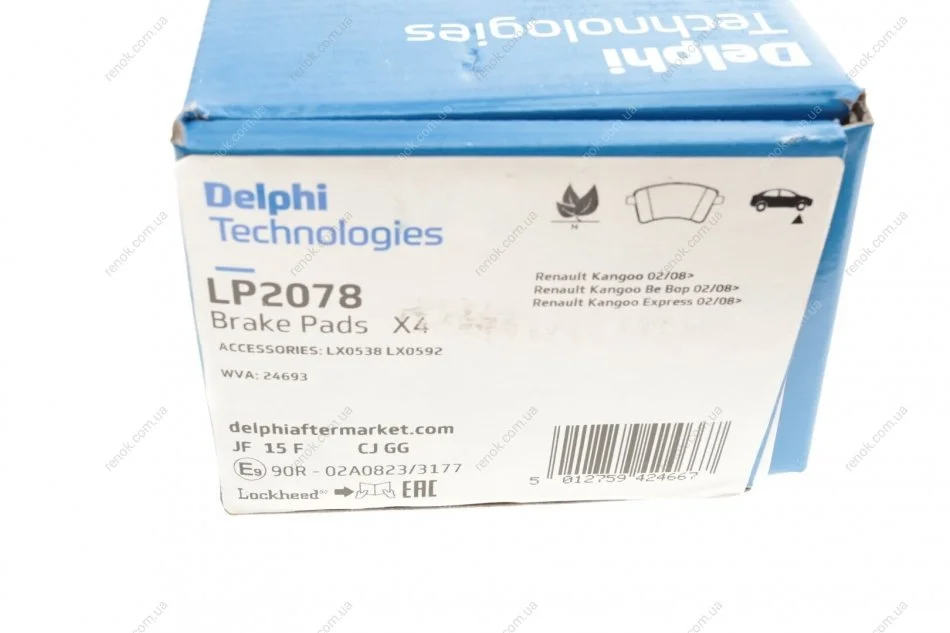 Колодки гальмівні (передні) Renault Kangoo 08- (TRW) Delphi LP2078 (7701210110, 7701209864, 410603750R)