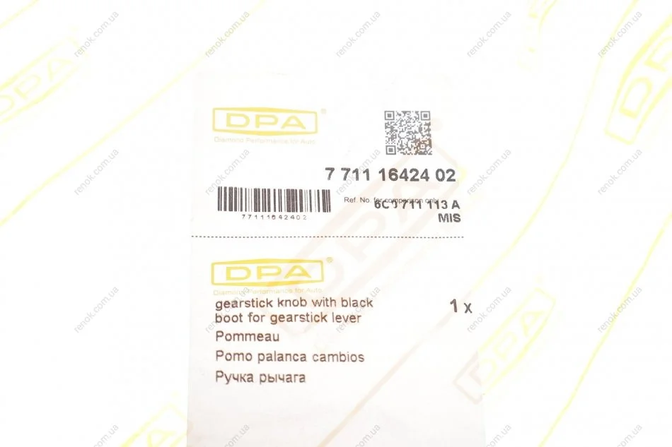 Рукоятка (чорна) перемикання передач з чохлом (чорним) 5 ступ VW Polo (09-) DPA 77111642402