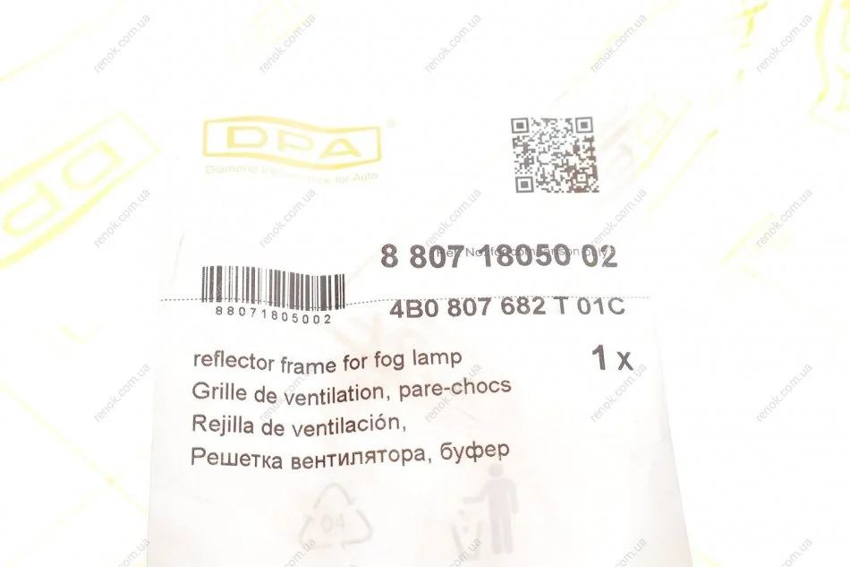 Решітка протитуманної фари правої Audi A6 (02-05) DPA 88071805002