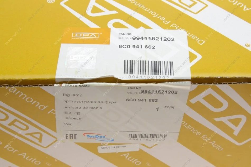Фара протитуманна права (галоген. під 2 лампами) VW Polo (6R1, 6C1) (09 -) DPA 99411621202