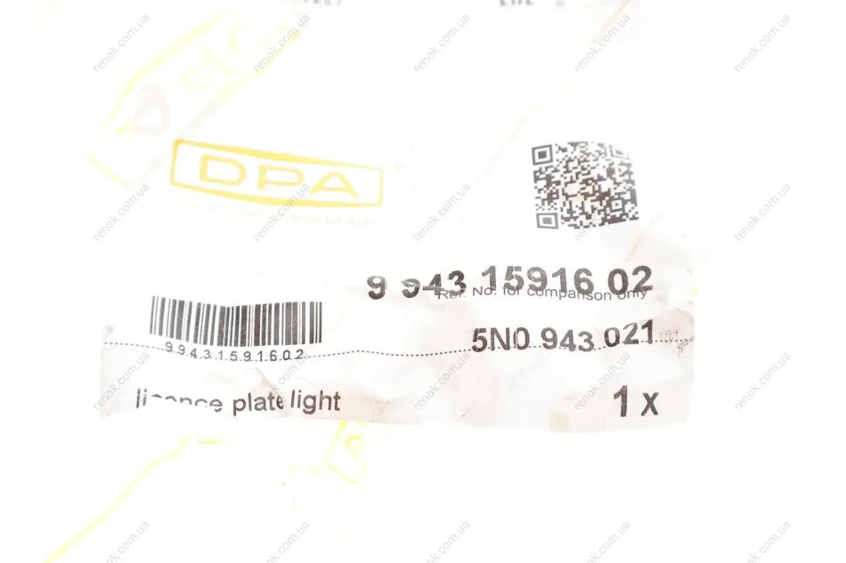 Ліхтар підсвічування заднього номерного знака VW Passat B7, Jetta A6, Golf 6 DPA 99431591602