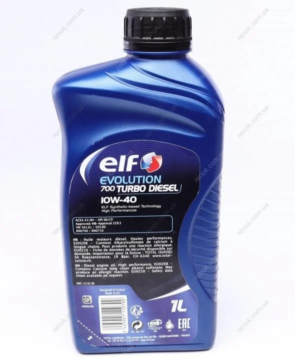 Олива 10W40 Evolution 700 Turbo Diesel (1L) (458446)(ACEA 2007/A3/B4/API/SL/CF/VW 505.00/MB 229.1) ELF 214126