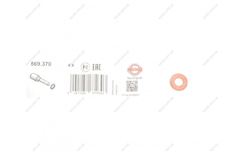 Шайба під форсунку Fiat Doblo 1.9JTD (7.3x16x2) ELRING 569.370 (198185, 1610564580, 198155)