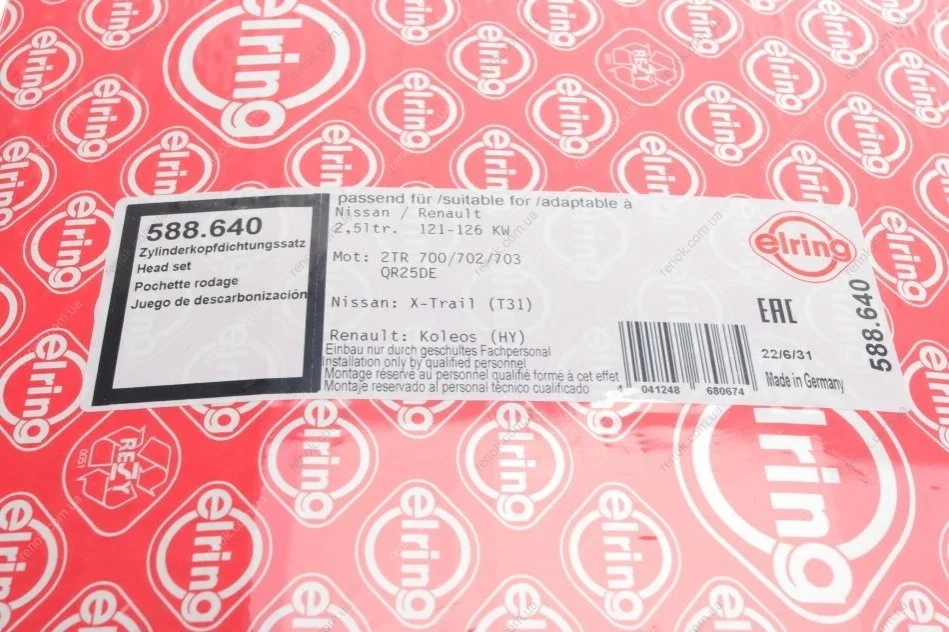 Комплект прокладок (верхній) Nissan X-Trail/Renault Koleos 2.5 07- ELRING 588.640 (a1042ET80K, A1042ET80J)