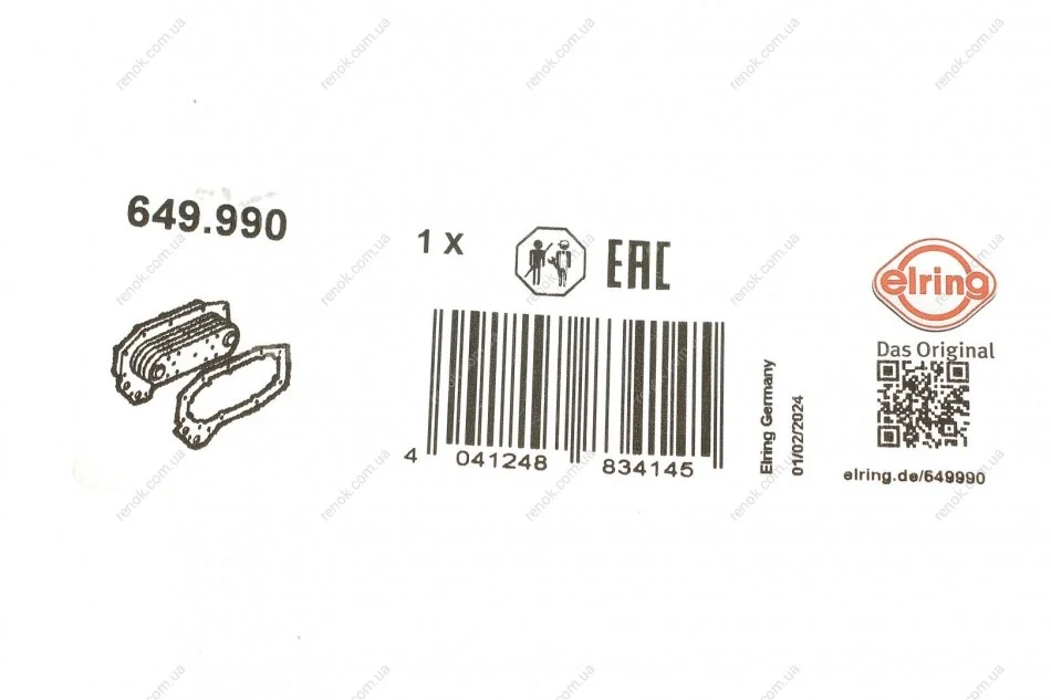 Прокладка радіатора масляного ELRING 649.990 (30774715)