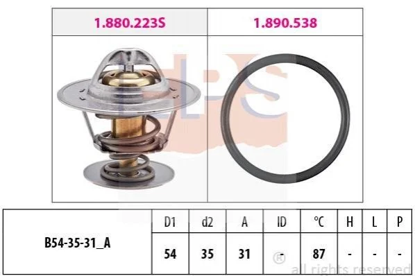VW Термостат (Made in Italy!) 87°C 1,4-1,8 AUDI 80, A6 2,0 -97, SEAT FORD PEUGEOT J5 90 EPS 1.880.434 (032121113, 03G121113A, 044121113)
