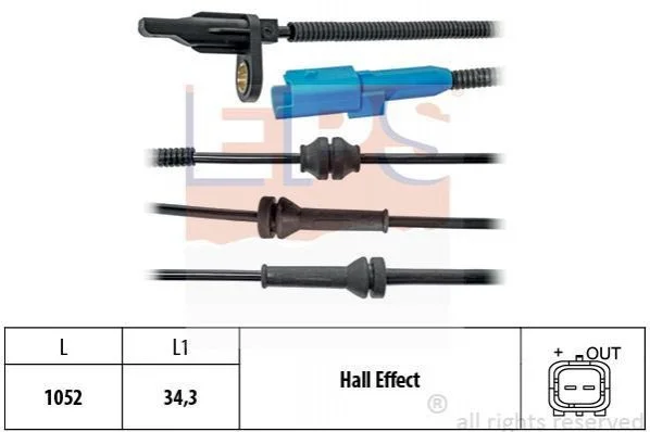 Датчик ABS передн. С3 ||, C3 Picasso, C4 Cactus, DS3 EPS 1.960.025 (4545E4, 4545J9, 9665455580)
