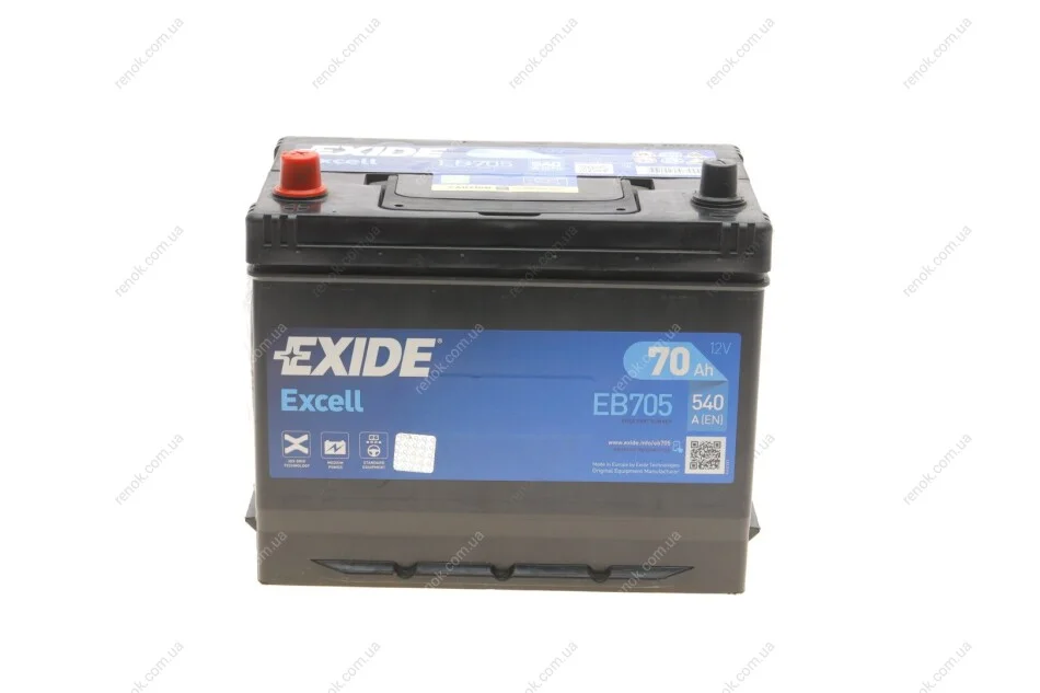 Акумуляторна батарея 70Ah/540A (270x173x222/+L/B9) Excell Азія EXIDE EB705 (5600X6)