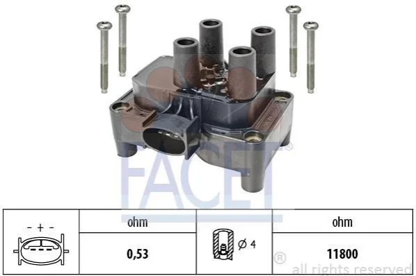 Котушка запалювання Ford Focus, Fiesta, Mondeo, Transit Connect (95-13) 1.3i-2.0i 16V FACET 9.6432 (138800, 138803, 138809)