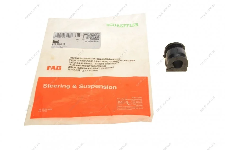 Втулка стабілізатора (переднього) Renault Duster 10- FAG 819 0238 10 (546114237R, 8200852550)