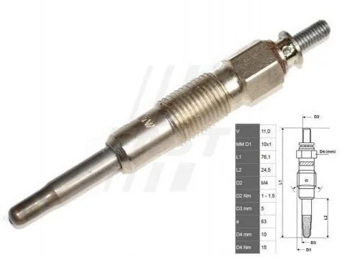 Свічка розжарювання Fiat Ducato 94- /Iveco Daily 00- 2.8D 76mm FAST FT82705 (596071, 5960K5, 59624Z)