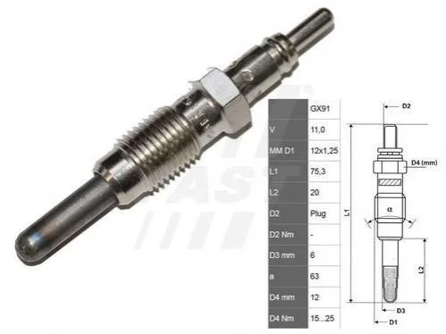 Свічка розжарювання Fiat Doblo/Punto 1,9D 99- (11V, M12*1,2) FAST FT82728