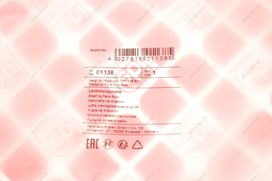Пильник кермової рейки FEBI BILSTEIN 01138