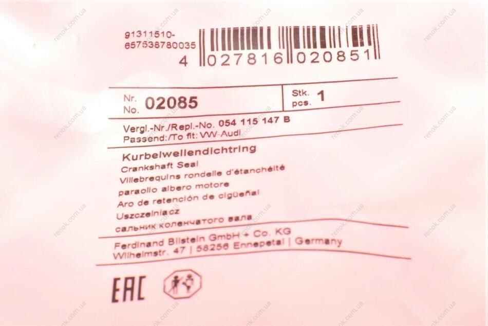 Сальник валу колінчатого FEBI BILSTEIN 02085 (1005301, 1066056, 1074626)