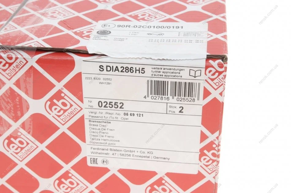 Диск гальмівний(к-т) FEBI BILSTEIN 02552 (00569208, 00569121, 0569208)