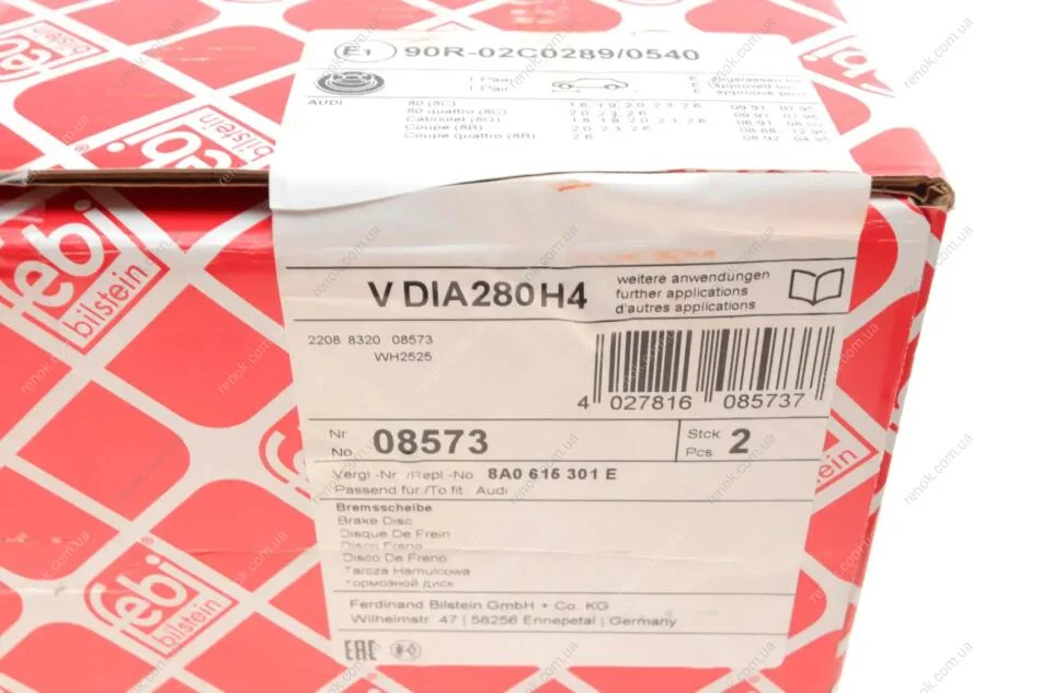 Диск гальмівний(к-т) FEBI BILSTEIN 08573