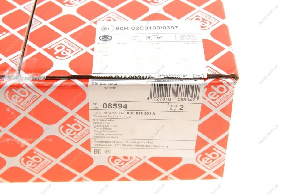 Диск гальмівний(к-т) FEBI BILSTEIN 08594 (8D0615301A, 8D0615301AROH)