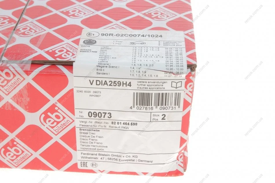 Диск гальмівний(к-т) FEBI BILSTEIN 09073 (8671018106, 7701207823, 8200038305)