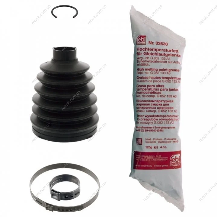 Ремонтний комплект пильника шарніра рівних кутових швидкостей, з елементами монтажу FEBI BILSTEIN 100042 (7701209242, 6001548666, 4008800Q0G)