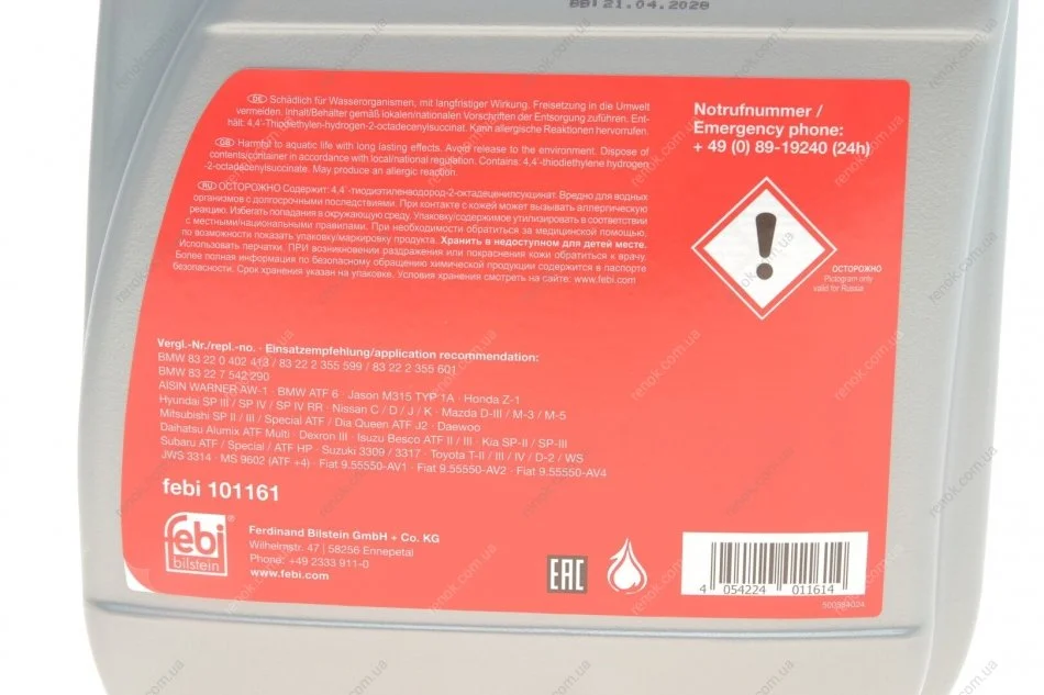 Олива ATF (5L) Dexron III/BMW ATF 6/Ford WSS-M2C922-A1/Toyota T-II,T-III FEBI BILSTEIN 101161 (a001989210310, 0450000100, 0450000115)