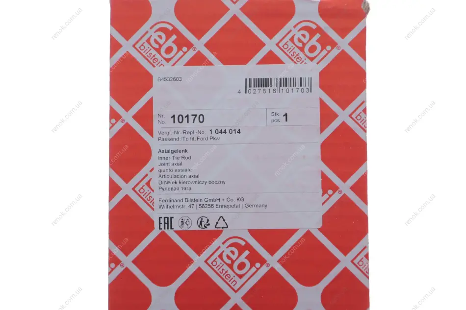 Тяга рульова FEBI BILSTEIN 10170 (1044014, 1E0032240, 96FB3L519BA)