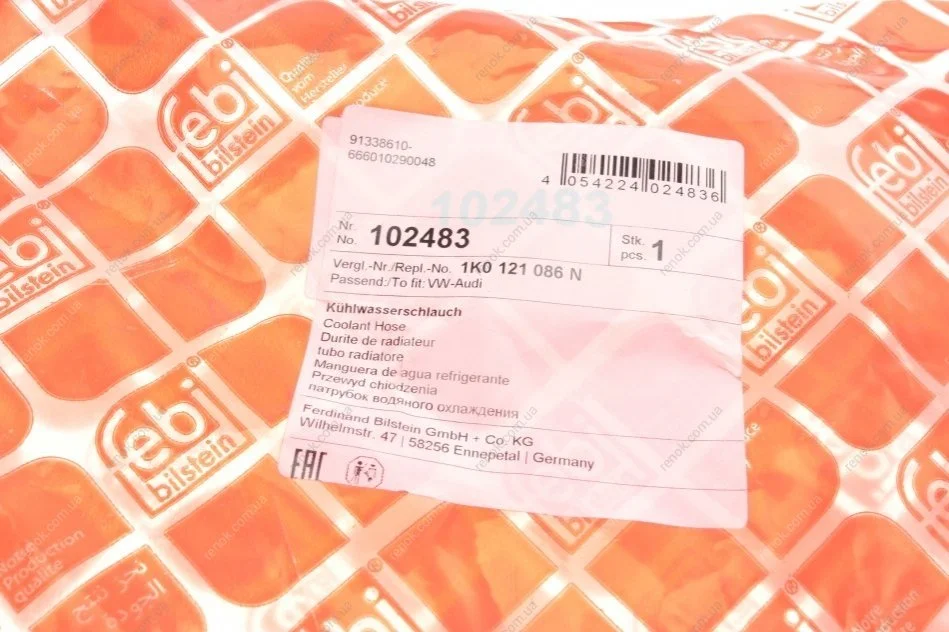 Патрубок радіатора (нижній) Audi A3/Skoda Octavia/VW Caddy/Passat/Touran 1.6/2.0 03-15 FEBI BILSTEIN 102483 (1K0122051P, 1K0121086N, 8P0121052B)