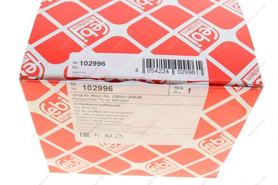 Ремонтний комплект пильника шарніра рівних кутових швидкостей, з елементами монтажу FEBI BILSTEIN 102996 (392419538R, 392419538RSK, GD3822530)