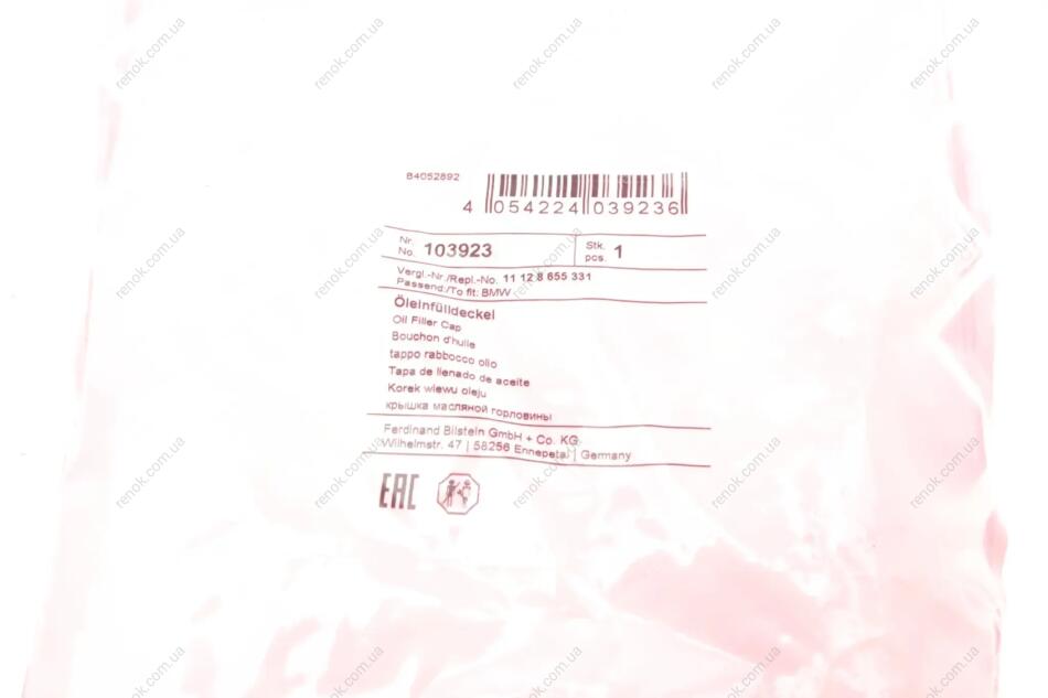 Кришка горловини маслозаливної BMW 3 (E46)/5 (E60/F10)/X5 (E70)/7 (F01-F04) 00- FEBI BILSTEIN 103923 (11124737102, 11127560481, 11128507153)
