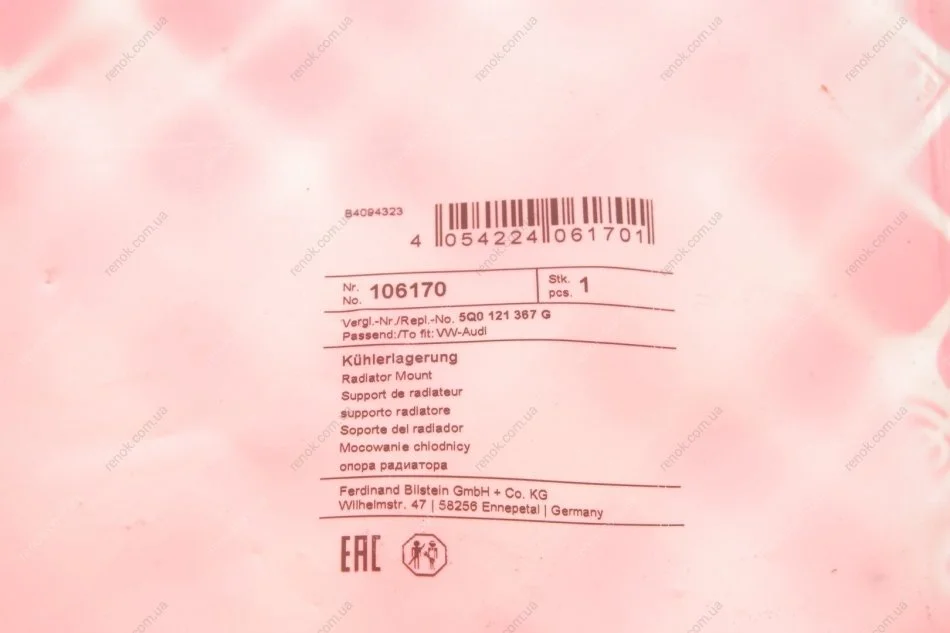 Подушка радіатора Skoda Octavia III 12- FEBI BILSTEIN 106170 (5Q0121367E, 5Q0121367G)