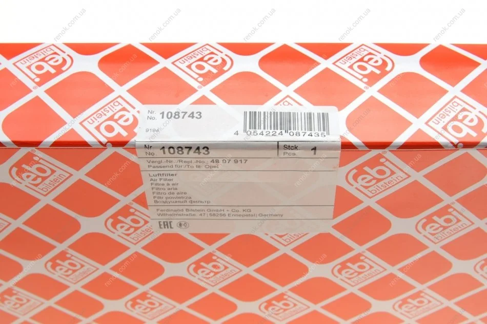 Фільтр повітряний Chevrolet Captiva/Opel Antara 2.0D/2.4LPG/3.2V6 06- FEBI BILSTEIN 108743 (22745823, 96628890, 4802875)