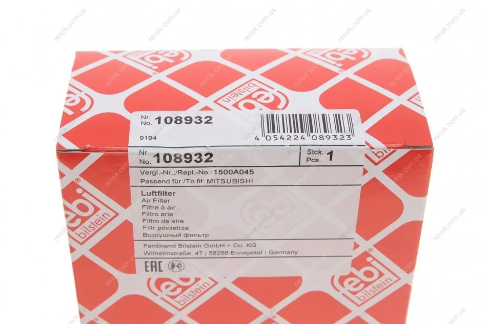 Фільтр повітряний Smart Forfour 1.1-1.5 i 04-06/Mitsubishi Colt 1.1-1.5 i 04-12 FEBI BILSTEIN 108932 (mr993130, 1500a045, 1500a094)
