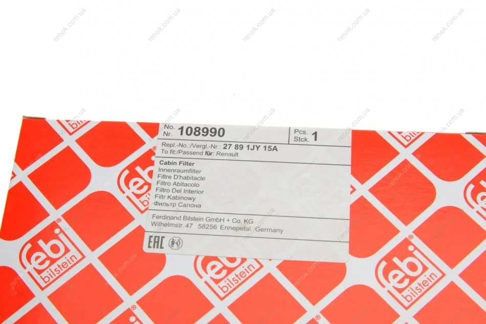 Фільтр салону Nissan Qashqai 07-/X-Trail 07-13 FEBI BILSTEIN 108990 (272776480R, 272774658R, 27891JY15A)
