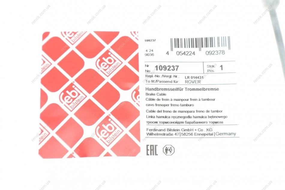 Трос ручних гальм FEBI BILSTEIN 109237 (lr014431, lr001032, lr008807)