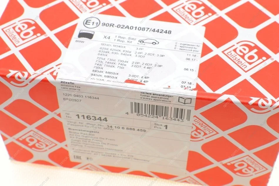 Колодки гальмівні (передні) BMW 3 (G20/G21)/5 (G30/G31)/7 (G11/12)/X5 (G05)/X6 (G06) 15- FEBI BILSTEIN 116344 (34106883510, 34106888459, 34106888459SK1)
