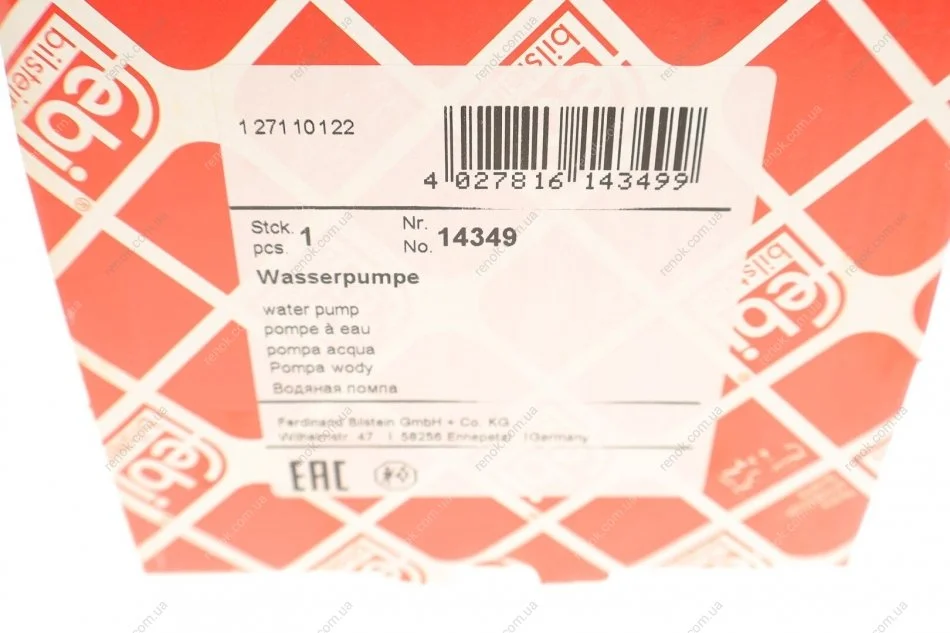 К-т помпи системи охолодження FEBI BILSTEIN 14349 (01334124, 01334112, 11512243003)
