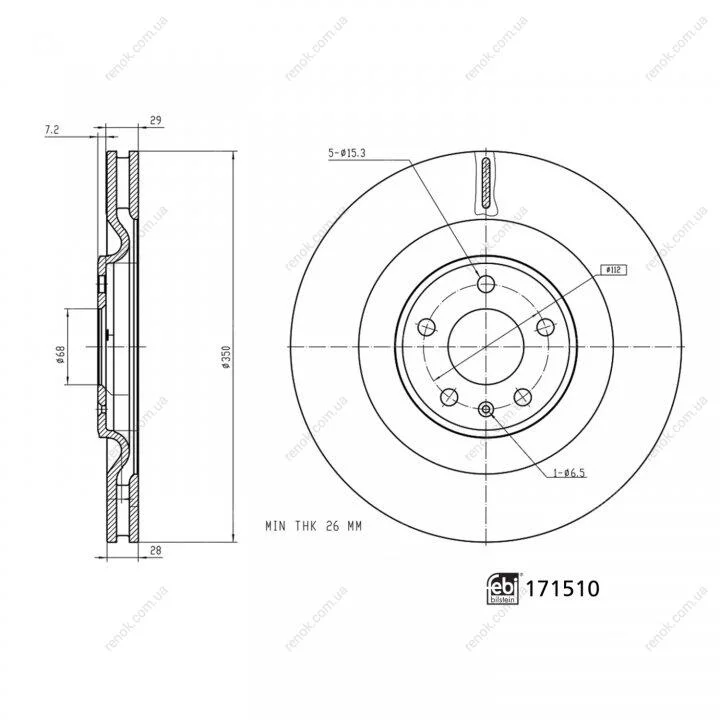 Товщина гальмівного диску (мм): 28
