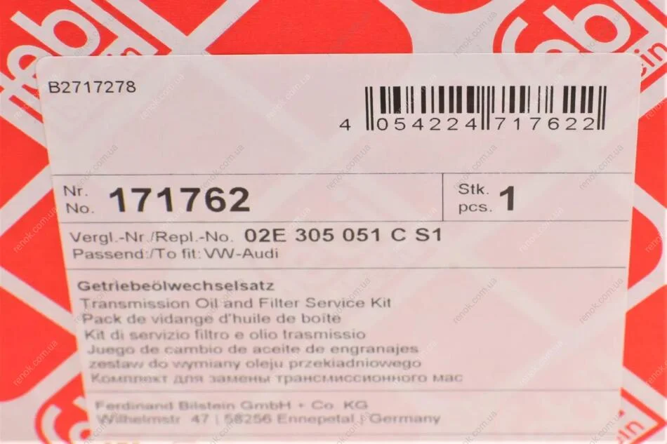Комплект для заміни оливи АКПП Audi/Skoda/Seat/VW 03- FEBI BILSTEIN 171762 (02E305051B, 02E305051BS1, 02E305051C)