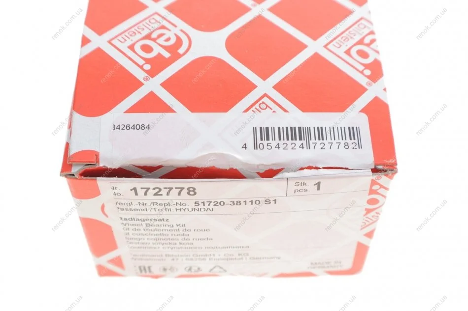 Комплект підшипників призначених для монтажу на маточину, роликові, з елементами монтажу FEBI BILSTEIN 172778 (517201D000, 517201D000S1, 517202G000)