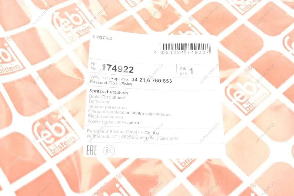 Захист диска гальмівного (заднього) (L) BMW 5 (E60) 01-10 FEBI BILSTEIN 174922