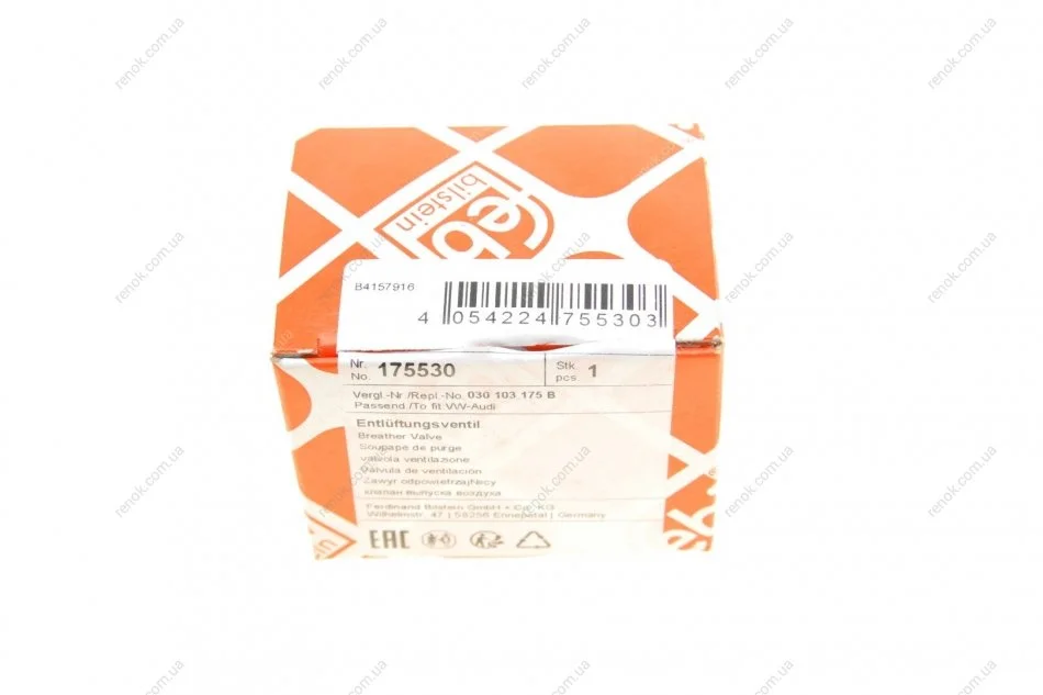 Клапан вентиляції картера VW Caddy 10-15/Seat Ibiza 1.2TSI 10-12/Altea 1.2/1.4TSI 07- (сапун) FEBI BILSTEIN 175530